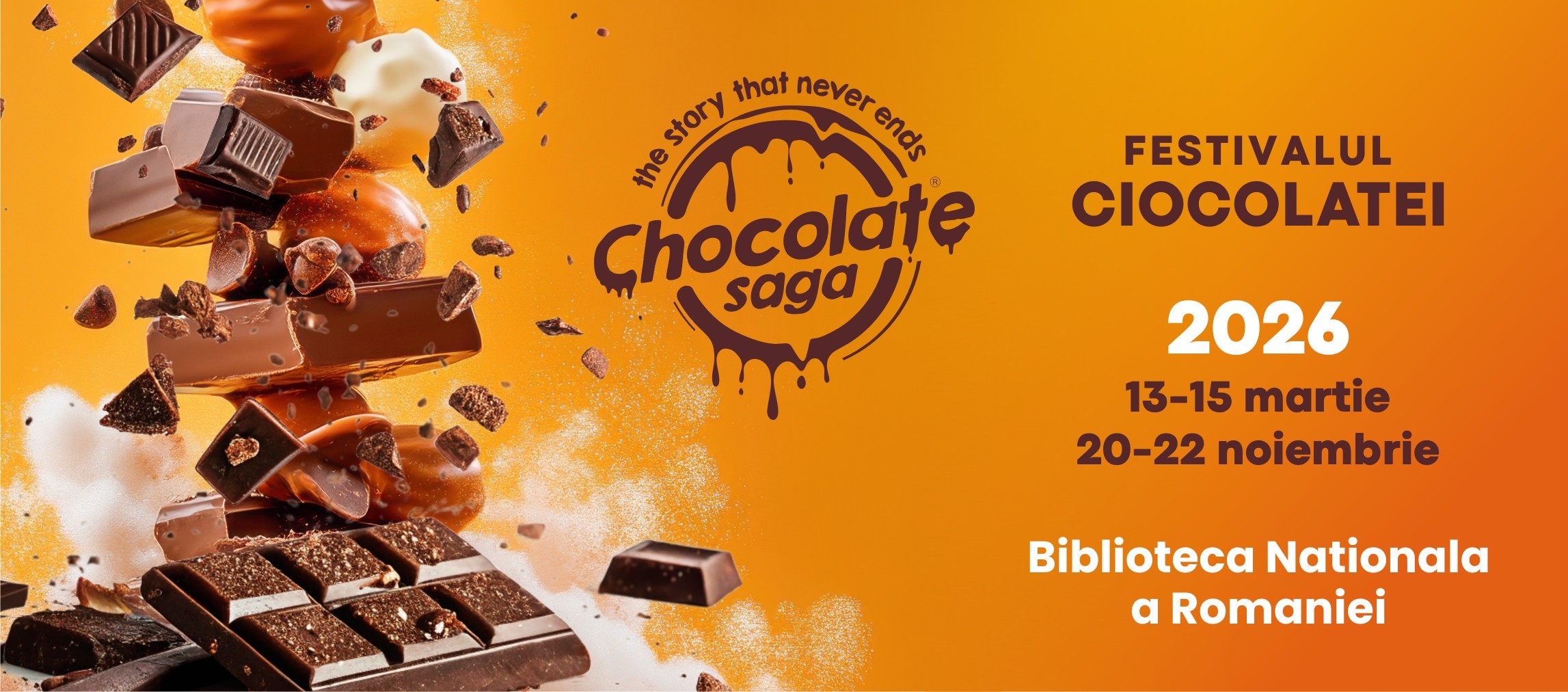 Chocolate Saga este unicul festival de ciocolată din România. Este o sărbătoare a ciocolatei, cu expozanți talentati care isi prezintă creațiile delicioase in pragul sarbatorilor de iarna.
